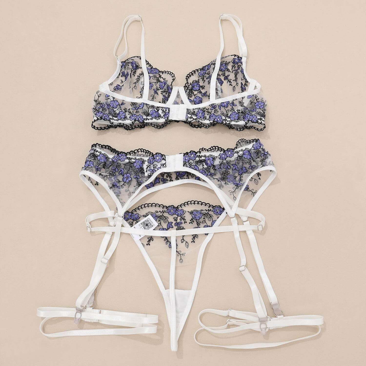 欧美风格新品花朵刺绣网纱透视性感情趣内衣套装