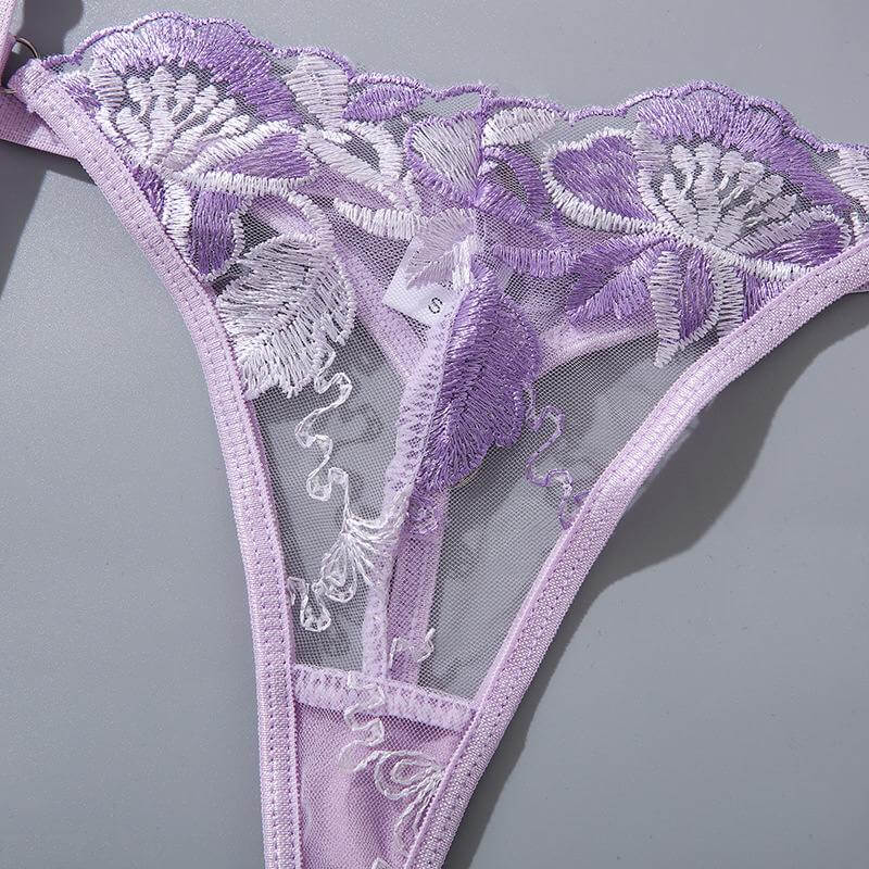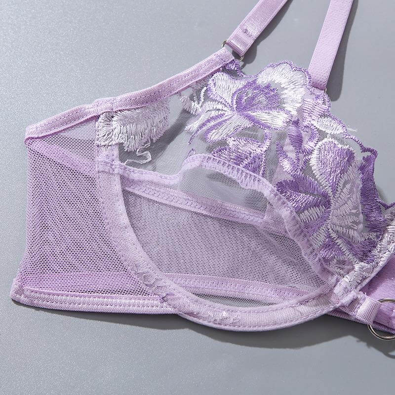 唯美少女蕾丝刺绣带钢圈聚拢托胸性感四件套