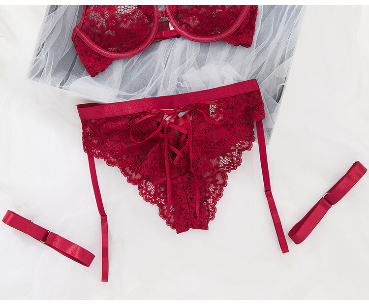 本命年情趣内衣镂空绑带露背蕾丝花边性感套装